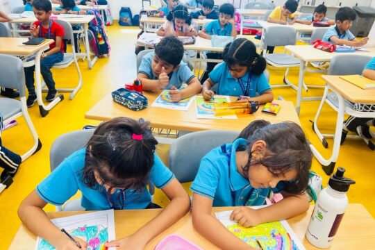 Students of Grade 1, 2, and 3 of Pearl School, Al Thumama campu...