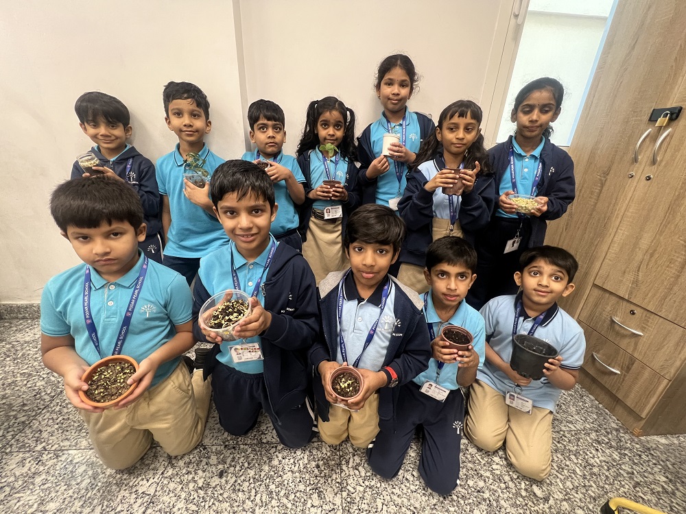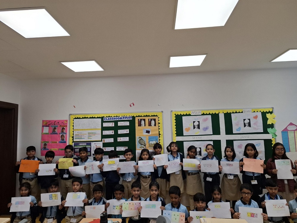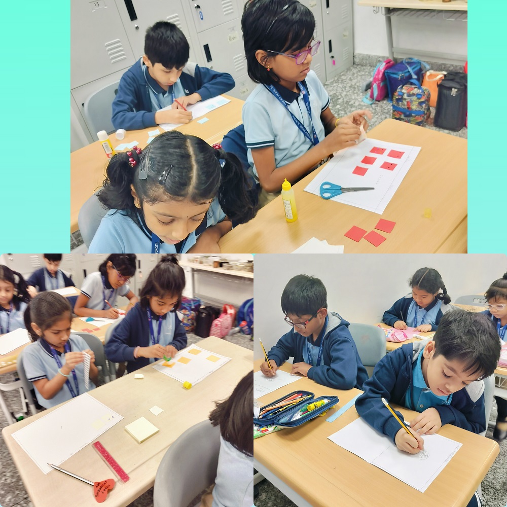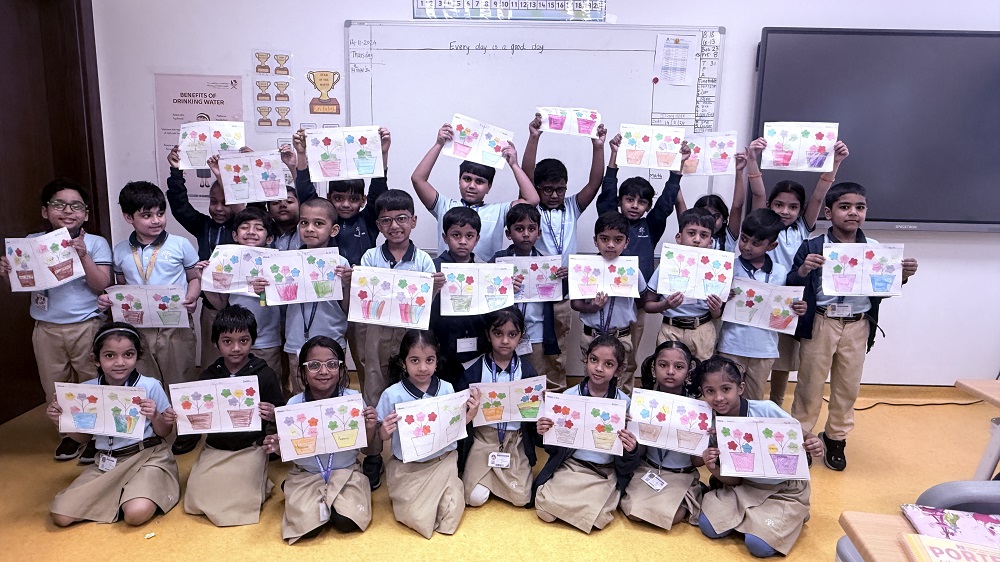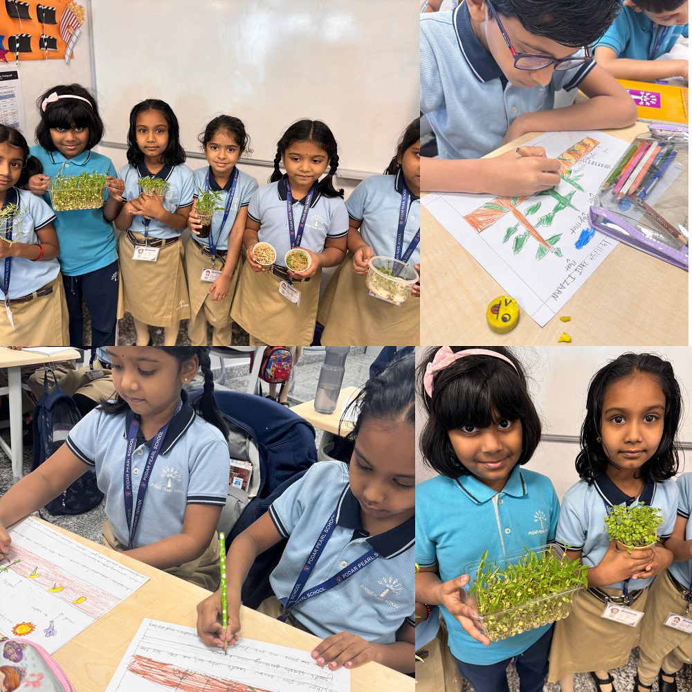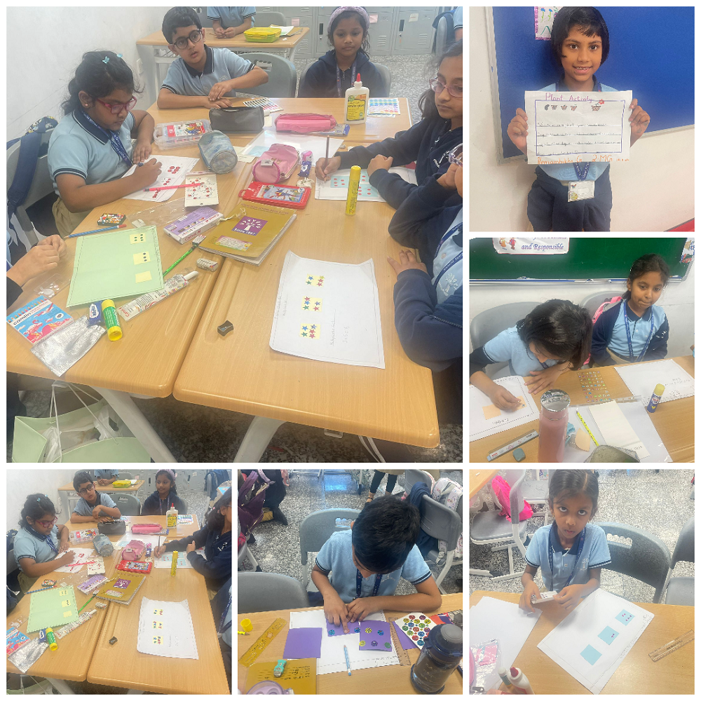 Grade 2 students grasped the concept that multiplication is simply adding the same number multiple times. They were able to perform multiplication problems with ease using stickers as a concrete tool. The visual representation helped solidify their understanding. Students were asked to plant in small pots and observe the growth. The teacher explained the conditions needed for germination, such as water, sunlight, and air. The class observed and documented their plants’ growth over a weeks. The process was explained step-by-step, from seed planting to sprouting, with students recording observations like the appearance of the seed, the development of roots, and the emergence of shoots. Activity related to adjective was conducted where students demonstrated a clear understanding of adjectives and their role in enhancing descriptions. Their vocabulary and ability to construct more vivid sentences improved, making their communication more expressive.