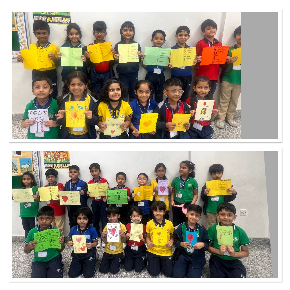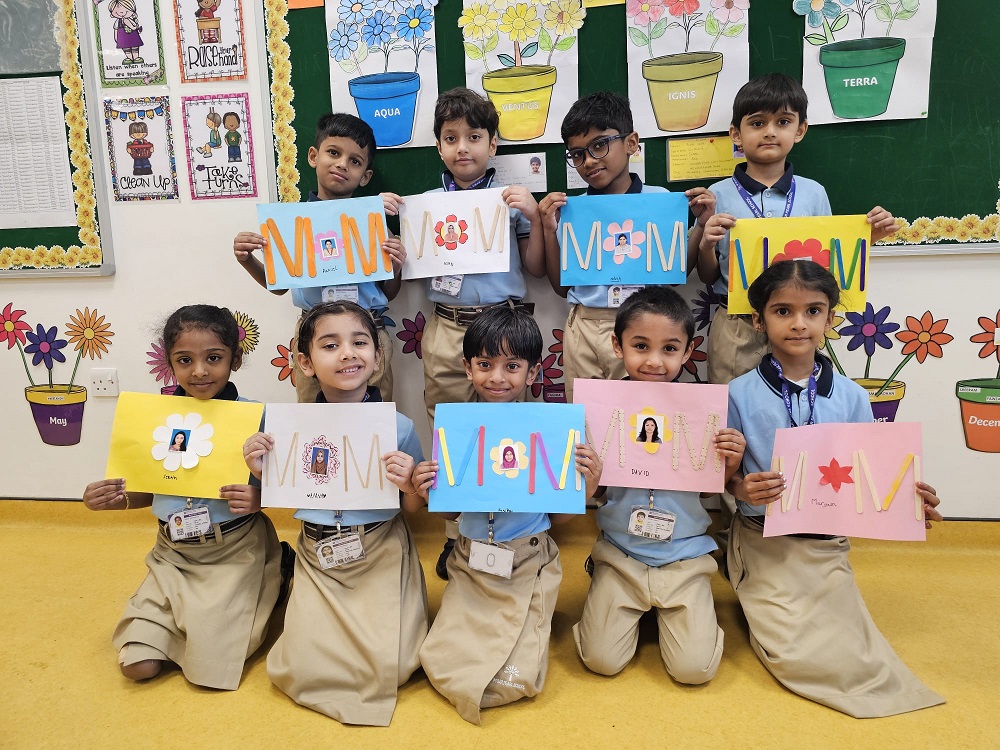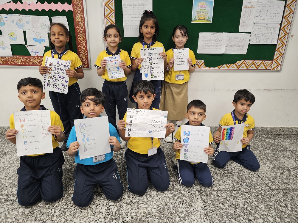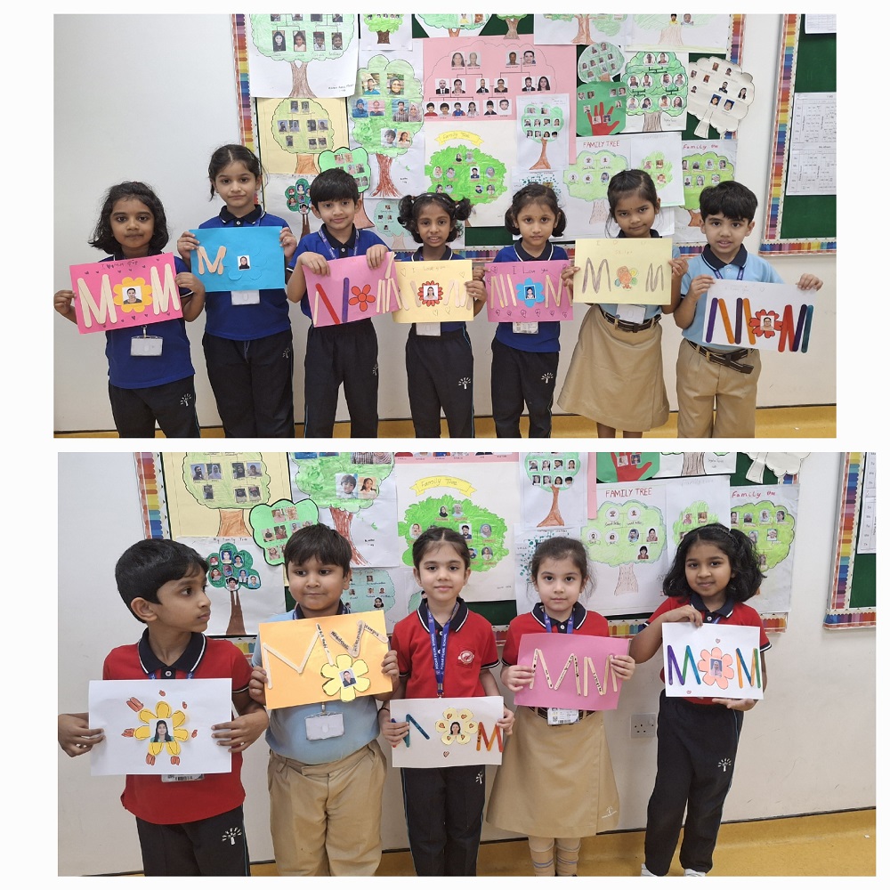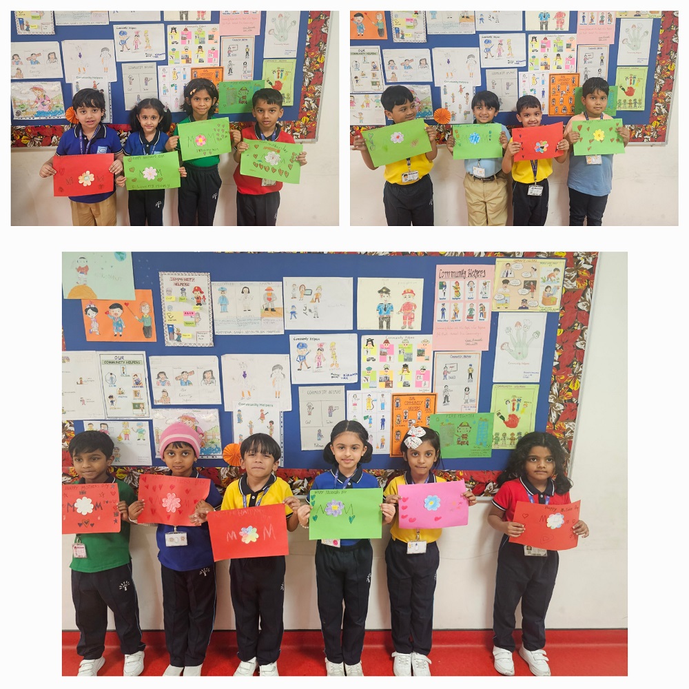 - Grade 1 Activity: Students made a beautiful craft using ice-cream sticks. They formed the word “MOM” and inserted their mother’s photograph inside the letter “O”. This hands-on activity allowed students to showcase creativity and celebrate their bond with their mothers.