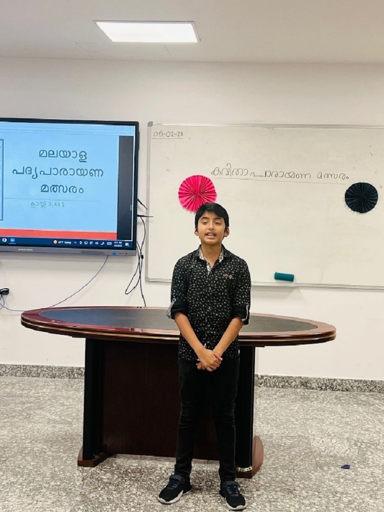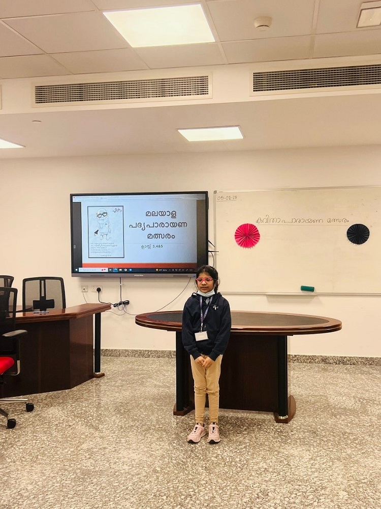 On February 5th, 2023, the Malayalam department of Podar Pearl School hosted the “Inter-Class Malayalam Poem Recitation Competition” for classes 3 to 5. This competition prompted the young poets to appear on stage and recite their poems. Everyone was astounded by the children’s vocal modulation and incredible memory abilities. Guest judges were invited to encourage students to provide unbiased results.