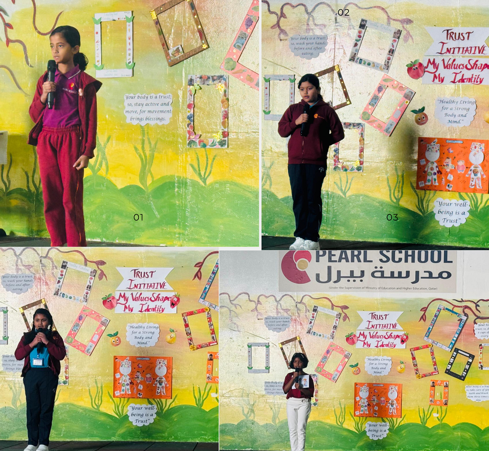 Pearl School Al Thumama conducted Trust Initiative special assembly on Healthy Habits, aimed to educate students on the significance of nutrition, physical activity, mental health, sleep, and screen time in leading a healthy lifestyle. The assembly started with prayers, school vision and mission, followed by inspiring speech on importance of healthy habit and how to change food choices. After the speech, the audience was treated to an interactive role-play performance by Grade 3 students, highlighting the healthy habit. The students presented a lively dance performance that highlighted the importance of physical activity. The assembly served as a reminder that small, positive changes can lead to big improvements in our overall health and well-being. Alongside the assembly, a variety of engaging activities were organized to help students learn about healthy habits in creative and hands-on ways. These activities not only promoted physical and mental well-being but also encouraged teamwork, creativity, and fun.