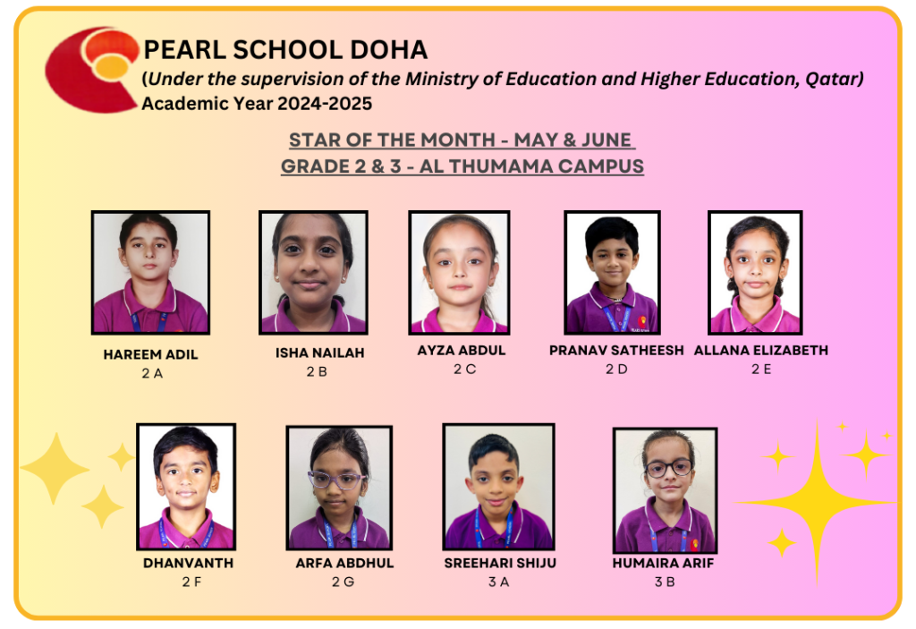 Podar Pearl School By Podar Pearl School > Blog > Star Student > Grade 2 & 3: Star Student of the Month May & June- (Thumama Campus 2024-2025) Grade 2 & 3: Star Student of the Month May & June- (Thumama Campus 2024-2025) admin@superadmin June 24, 2024 Star Student 0 Share Tweet Pin it Previous Post Class I to III: International Yoga Day (Thumama Campus 2024-25) Next Post Grade 1: Star Student of the Month May & June (Thumama Campus 2024-25) Related Posts Co-curricular Gandhi Jayanti 2025 Celebration at Podar Pearl School, Al Dafna– Honoring the Father of the Nation October 8, 2025 Star Student Star of the Month – September 2025 | Grades 1 to 8 | Podar Pearl School, Al Dafna Campus October 7, 2025 Star Student Star of the Month – September 2025 | Grades 1 to 12 | Al Meshaf Campus October 7, 2025 Comments are closed.