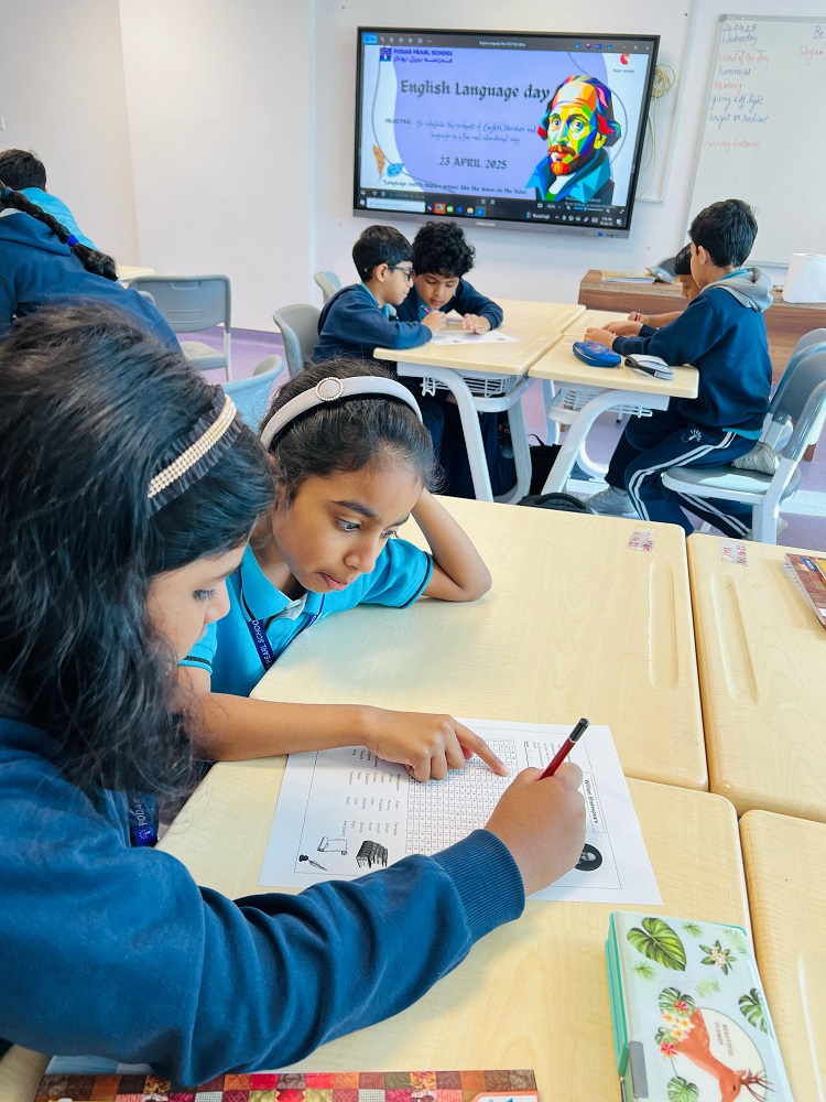 The Language Day Celebration at Podar Pearl School, held on 23rd April 2025, was an engaging and creative event aimed at fostering an appreciation for literature and language among students of Grades III, IV, and V. The primary focus was to introduce students to the legacy of William Shakespeare and celebrate the beauty of the English language. Students participated in a Shakespearean parade, dressing up as iconic characters like Hamlet, Macbeth, and Juliet, and took part in a wordsearch activity to enhance their vocabulary. The celebration also featured a video titled Discovering Shakespeare to provide deeper insights into his works. The event encouraged creativity, enhanced communication skills, and promoted an understanding of global literary heritage, aligning with the Round Square Ideals of Internationalism and Creativity. The celebration not only engaged students but also reinforced values of respect, cultural diversity, and artistic expression, resonating with Qatar’s emphasis on education and multiculturalism.