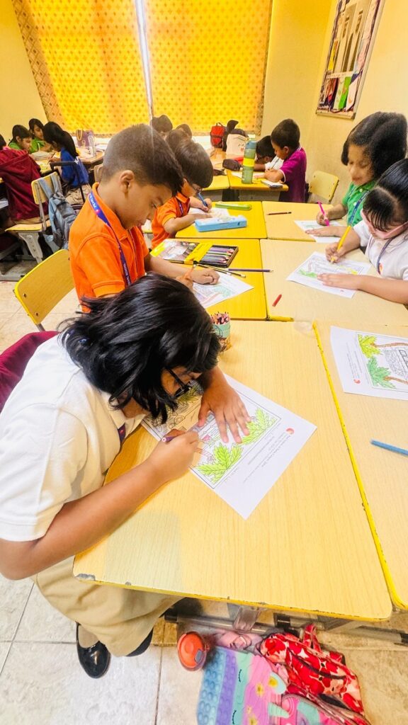 Every child has the potential to be an artist.’ A Kaleidoscope Colouring Competition for Grades I and II was held on April 29, 2024, at Pearl School Dafna Campus to explore the creative potential of our children’s young minds. It aimed to encourage creativity and artistic expression among young students. Each participant was provided with colouring sheets and colour pencils to unleash their creativity. It improved the child’s creativity as well as their eye-hand coordination. It happened in each of their classes during activity periods. Colouring can help strengthen awareness of the hand’s position and margins on the page to help children keep their pencil within a given area. It was a great opportunity for the children to express themselves through colouring.
