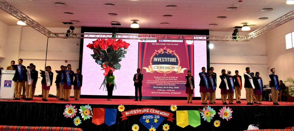 The Investiture Ceremony of Pearl School, Al Dafna Campus, was held on 24th May at the Meshaf Campus. The event was graced by the presence of the School President, Vice President, Board of Directors, Principal, Headmistress, Coordinators, parents, and students.