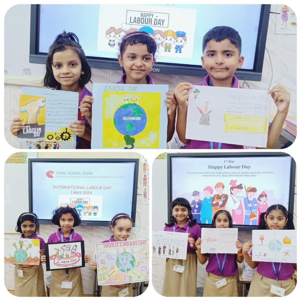 Students of Grade 1, 2, and 3 of Pearl School, Al Thumama campus organised World Labour Day and celebrated this day by paying respect to the people who work for the School. Students expressed their gratitude to support staff of their services, love and care that they provide throughout the year. Students made lovely thankyou cards and handed over to all the staffs as a gesture of love. As a token of appreciation, each driver and attendants was presented with a personalized gift. Through showing presentation on topic Labour Day, teachers taught students to have gratitude in heart for those who serve them and this day reminds us to be kind and respectful towards all those who help us on daily basis.