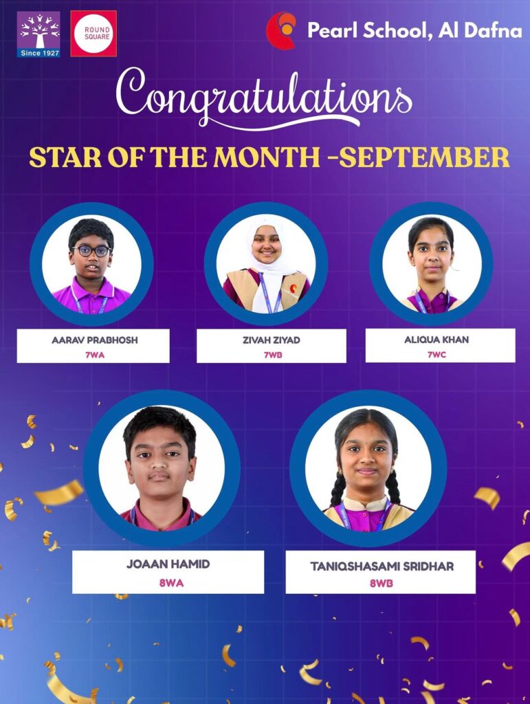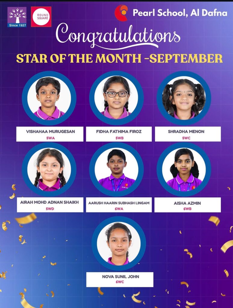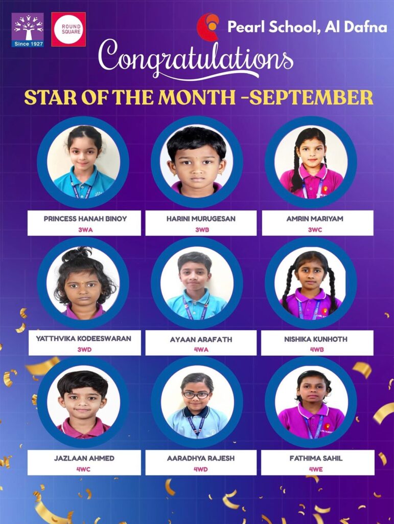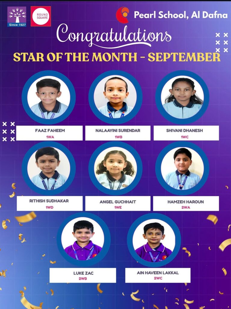 At Podar Pearl School, Al Dafna Campus, we are delighted to celebrate the Star of the Month for September 2025, honoring students from Grades 1 to 8 who have excelled in academics, behavior, and values.