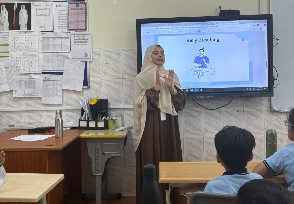 The session, titled “Stress Busters and Success Starters” for grade 3 and 4 students, was conducted at Pearl School Al Thumama Campus by the School Counsellor, Ms Hiba Thahseen. The session focused on stress management and preparing for exams with confidence as the students approach their half-yearly exams. The core theme used the concept of “superpowers” to make the content relatable and empowering for the young students.