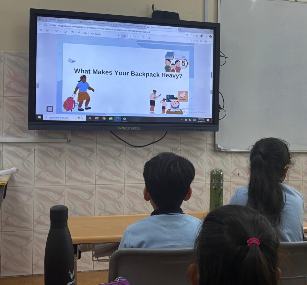 The session successfully explained stress in an age-appropriate manner, helping students understand and identify the physical and emotional signs of feeling worried. Stress was introduced using the relatable analogy of “What’s in Your Backpack?” where it was presented as a “heavy feeling” caused by various “stressors”. Students actively participated in the interactive activities to recognize their unique stress triggers. The session provided students with practical tools for success and stress reduction. Proactive study skills were introduced as the “My Super Study Plan,” emphasizing three key strategies: Start Early, Break It Down, and Review Daily.