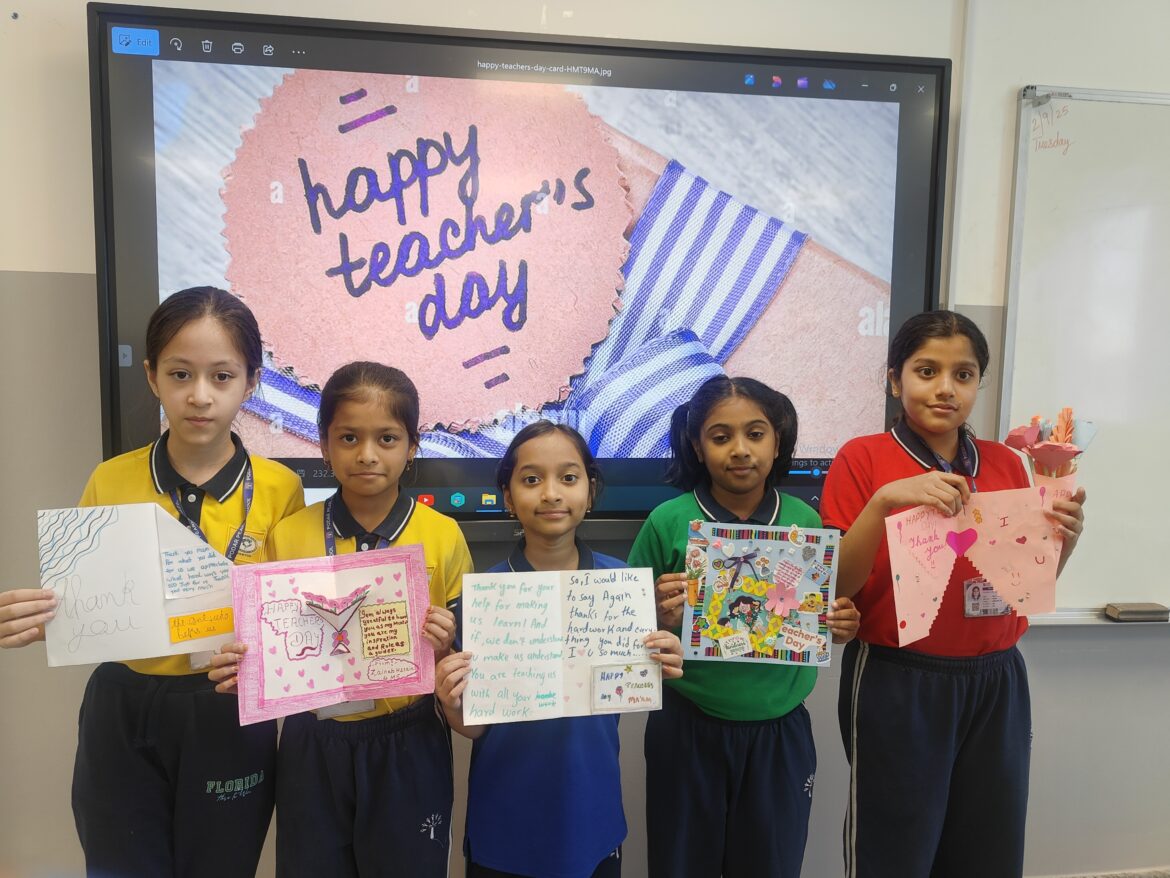 On September 2, 2025, students from Grades 3 to 5 at Al Meshaf Campus celebrated Teacher’s Day through a series of creative craft activities designed to express their gratitude and appreciation. Students chose from options such as handmade thank-you cards, paper flower bouquets, mini thank-you jars, and framed art or quotes. These activities fostered creativity, fine motor skills, and heartfelt expression while promoting values aligned with the school’s vision and mission of nurturing respectful, responsible, and compassionate learners. The event also reinforced core Qatari values such as respect, gratitude, and community cohesion, and reflected the Round Square ideals of Internationalism, Respect, and Service. Through these meaningful creations, students honored their teachers’ dedication and contributed to building a positive, inclusive school community.