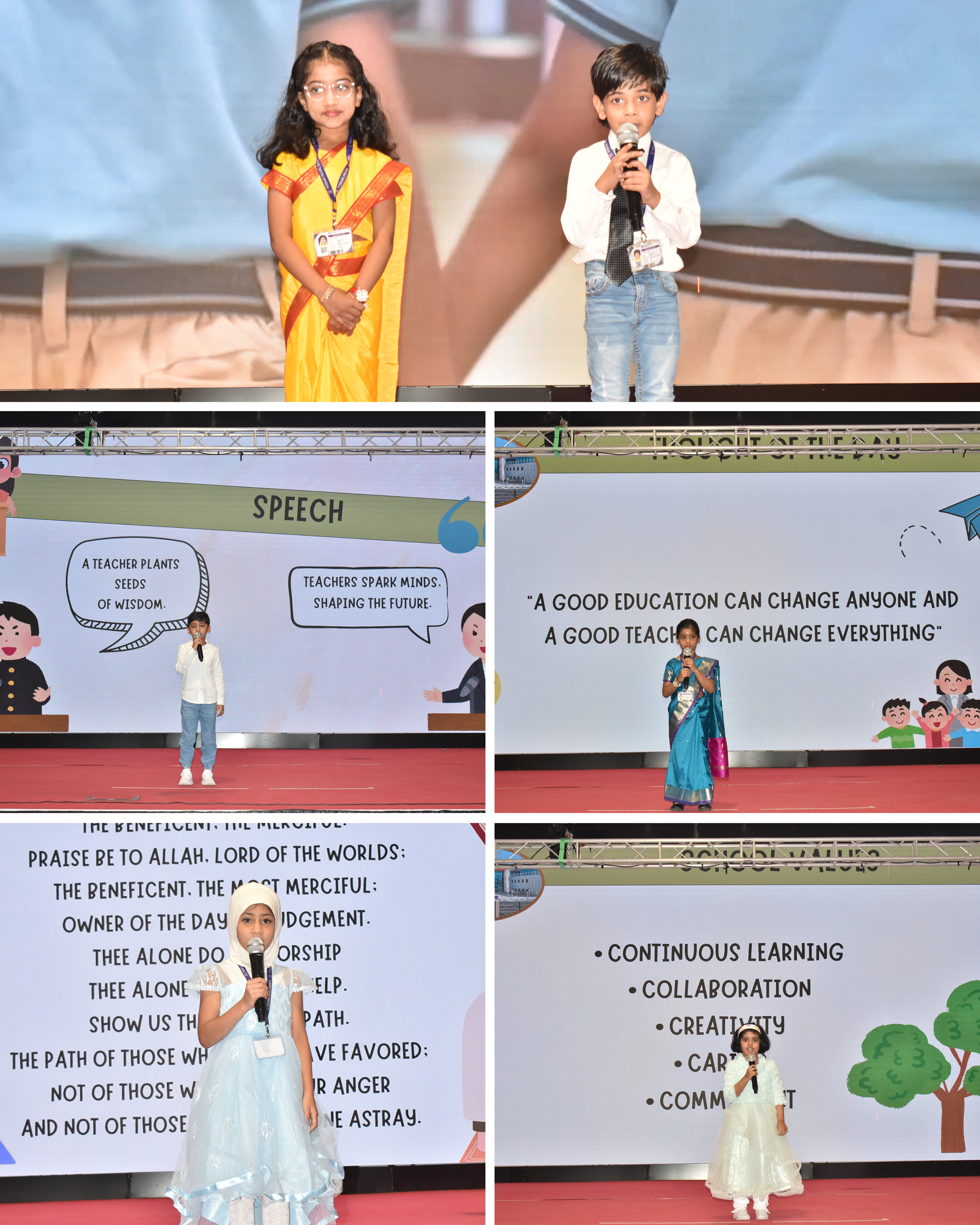 The Principal/Headmistress addressed the assembly, appreciating teachers’ tireless efforts and emphasizing the importance of respect, gratitude, and cooperation. The event concluded with a student-led vote of thanks, acknowledging teachers, peers, and staff for their contributions in organizing the celebration.